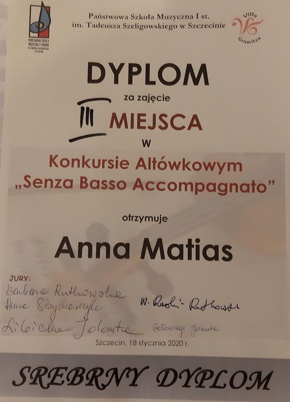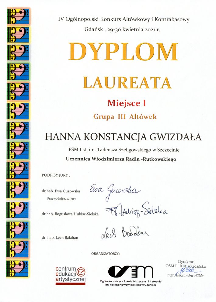 IV Ogólnopolski Konkurs Altówkowy i Kontrabasowy, 29-30.04.2021 Gdańsk – III Miejsce