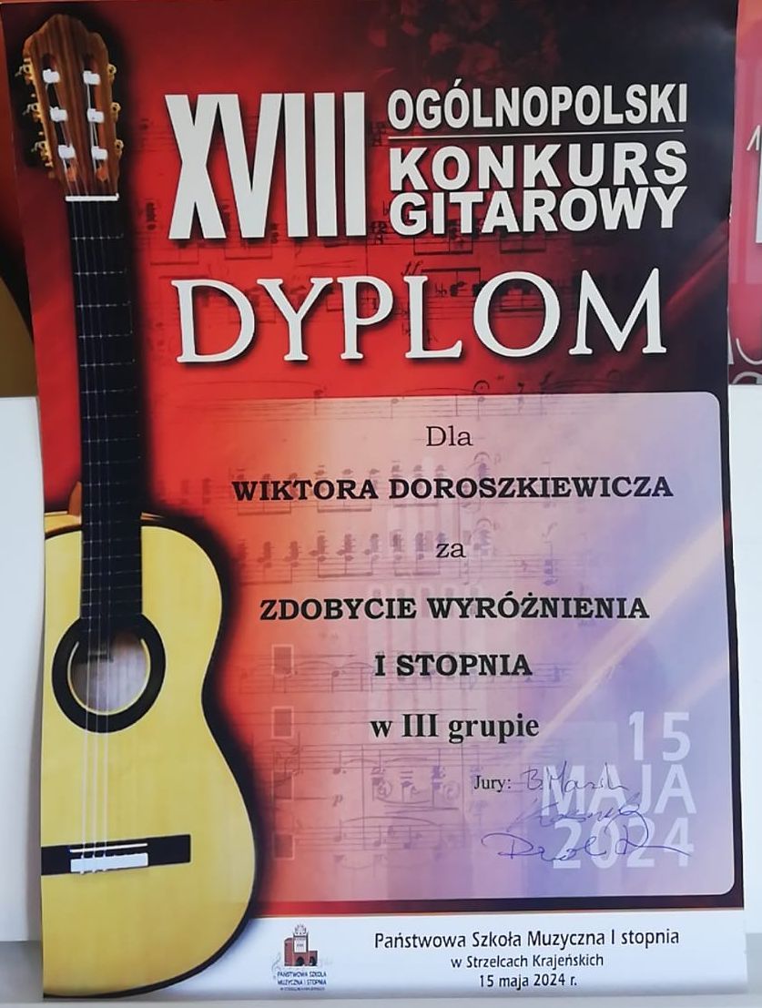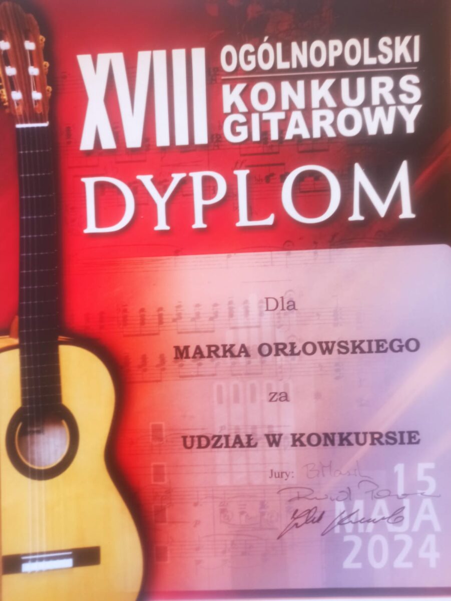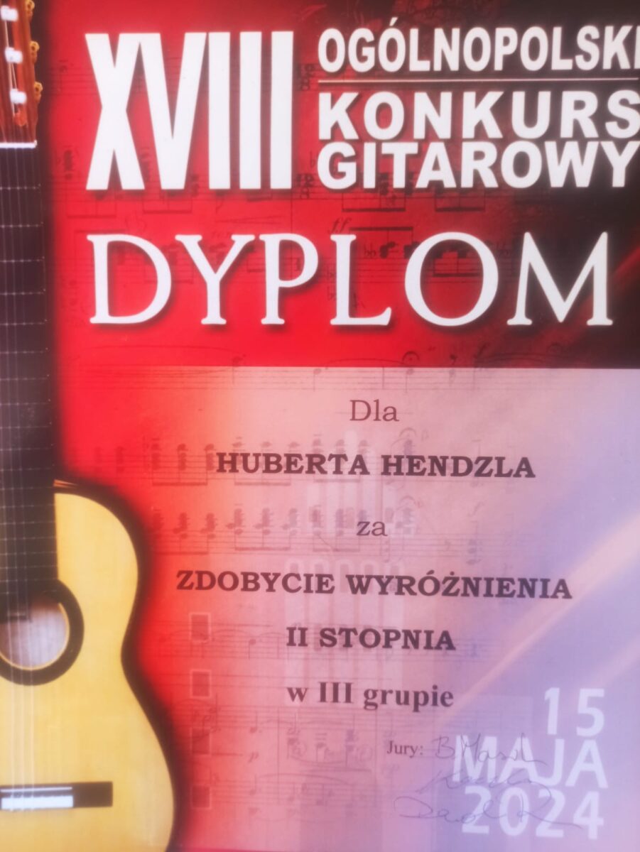 XVIII Ogólnopolski Konkurs Gitarowy, 15.05.2024 Strzelce Krajeńskie – wyróżnienie