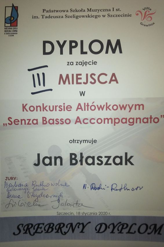 III miejsce na I Ogólnopolskim Konkursie Skrzypcowym Sonat