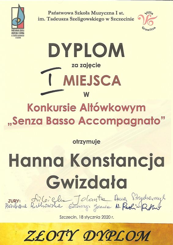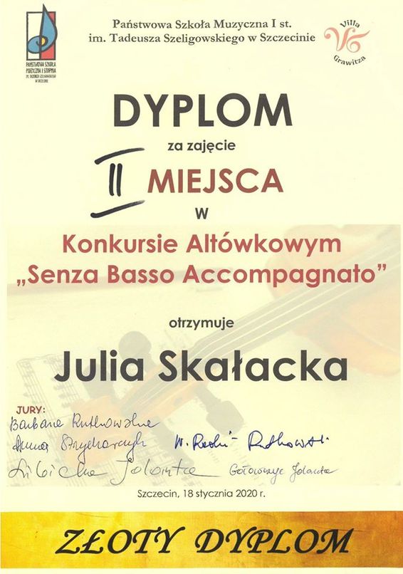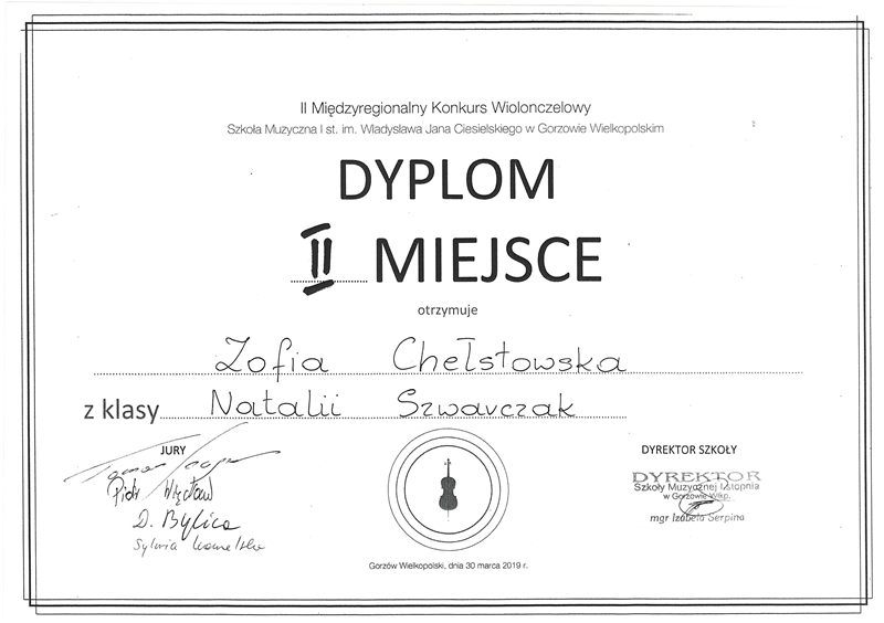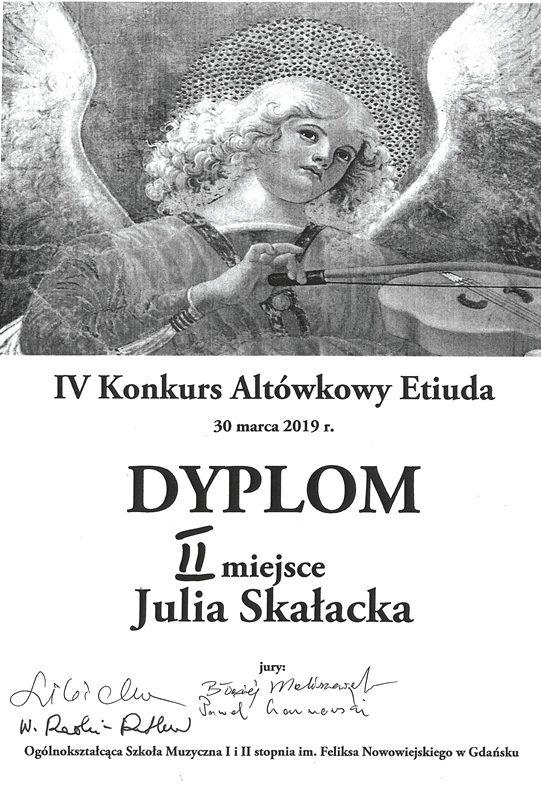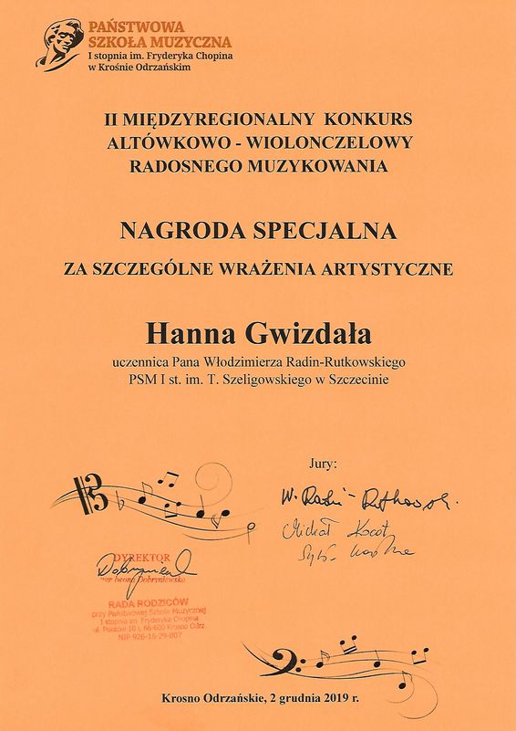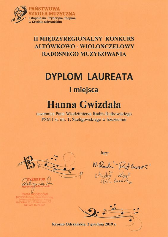 II Międzyregionalny Konkurs Altówkowo-Wiolonczelowy Radosnego Muzykowania w Krośnie Odrzańskim, 2 grudnia 2019 r. – I miejsce