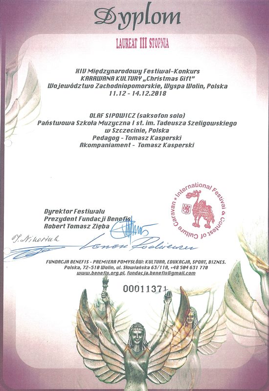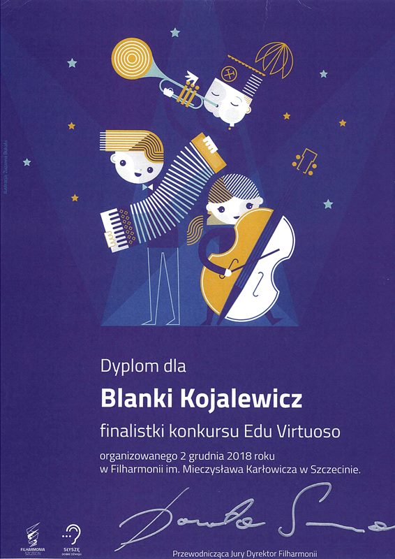 XIX edycja Międzynarodowego Konkursu „Moje inspiracje muzyczne” 2017/2018, 4-5.06.18 Nałęczów – II miejsce (kat. Instrumentaliści, grupa 1)