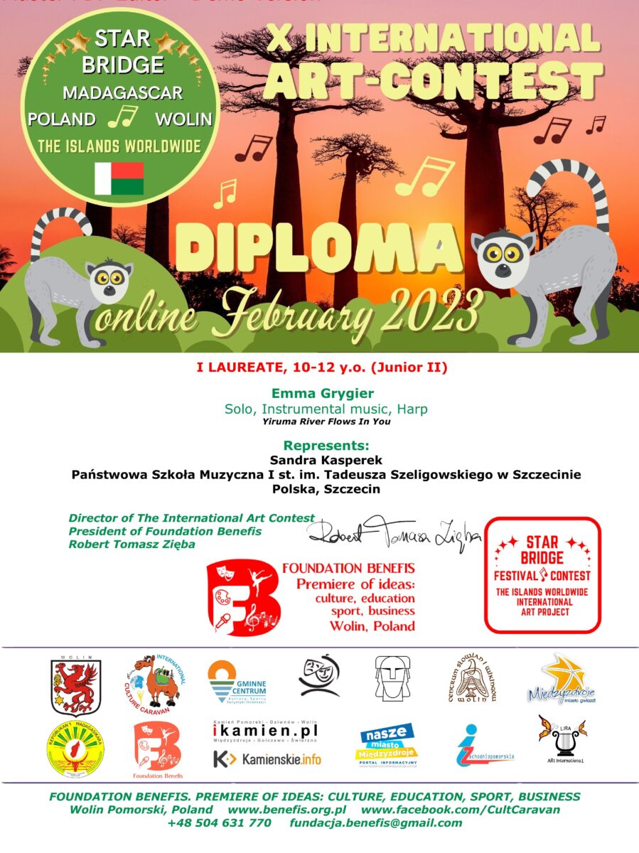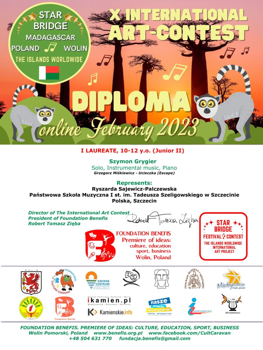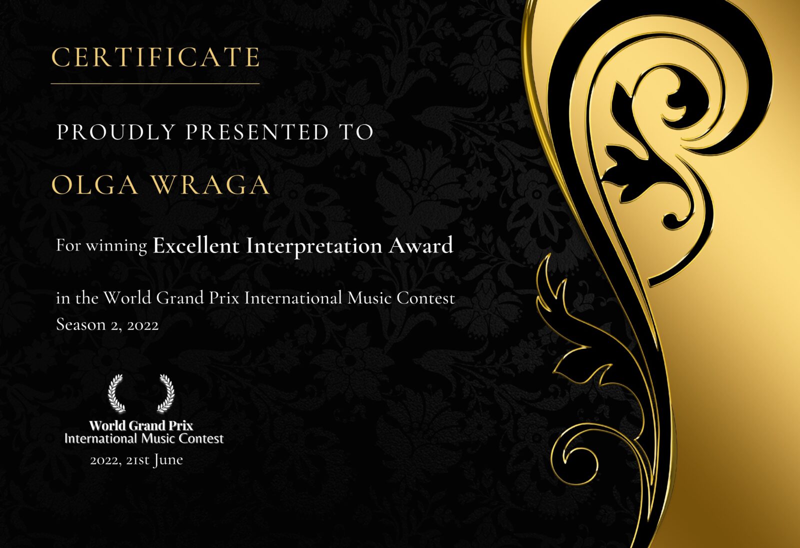 IN REMOTE INTERNATIONAL ONLINE COMPETITION FOR YOUNG PIANISTS, Styczeń 2021 Lwów – I Miejsce