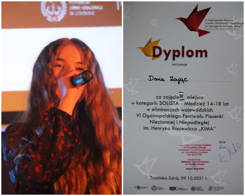 VI Ogólnopolski Festiwal Piosenki Niezłomnej i Niepodległej im. Henryka Rasiewicza „KIMA”, .10.2021 Trzcińsko Zdrój – III miejsce