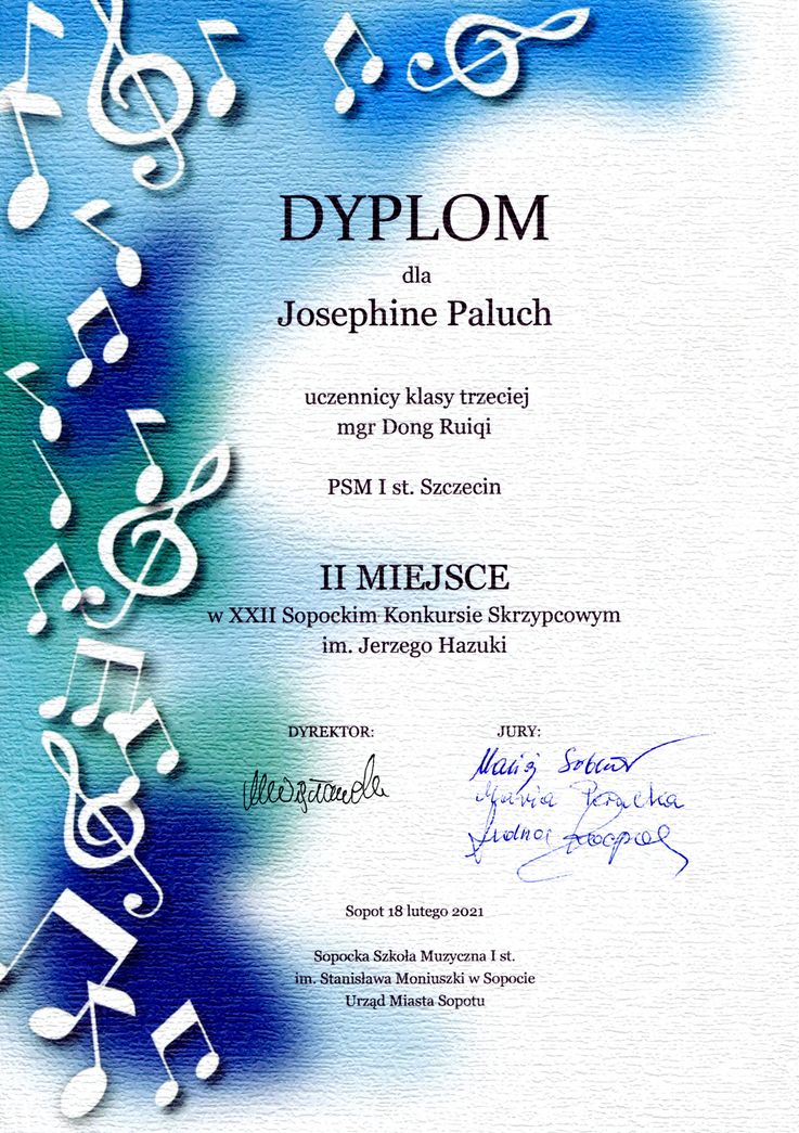 XXII Sopocki Konkurs Skrzypcowy im. Jerzego Hazuki, 18.02.2021 Sopot – II miejsce