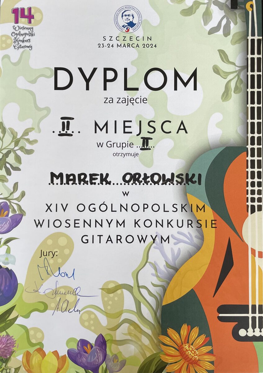 XIV Wiosenny Konkurs Gitarowy, 23-24.03.2024 Szczecin – II miejsce