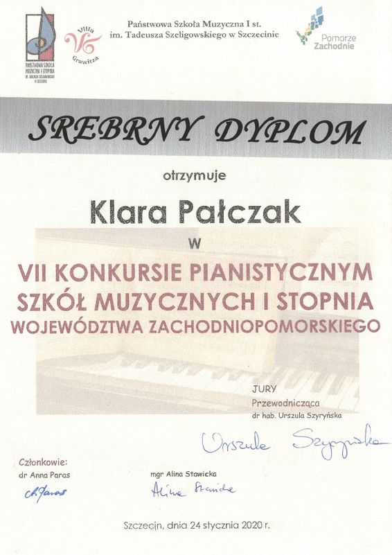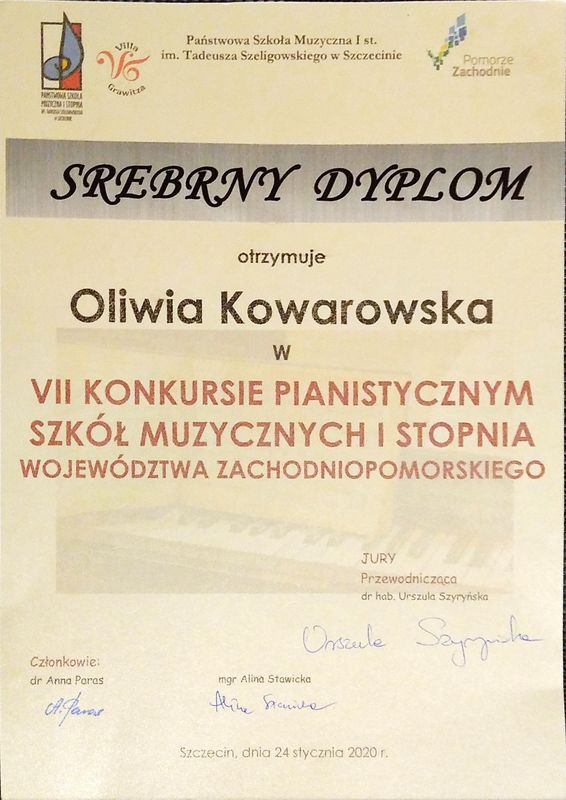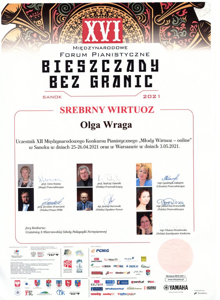 XII Międzynarodowy Konkurs Pianistyczny „Młody Wirtuoz – online”, 25-26.04.2021 Sanok – Srebrny Wirtuoz