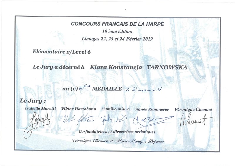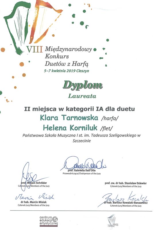 wysoka punktacja na Przesłuchaniach Centrum Edukacji Artystycznej Uczniów Klas Harfy