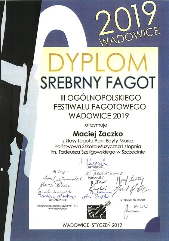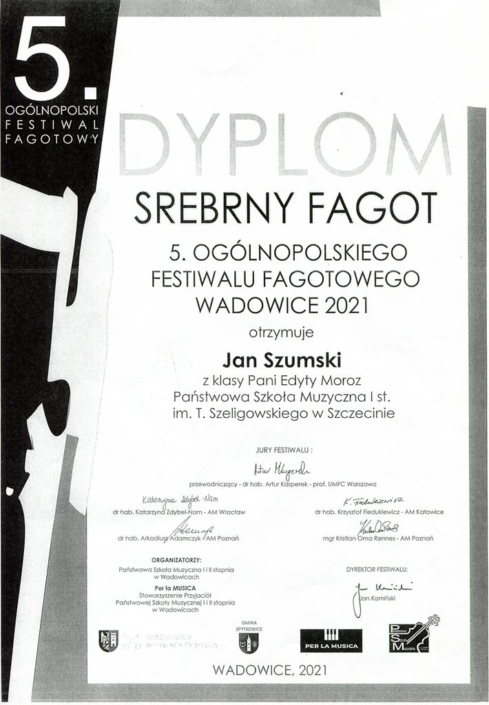 5. Ogólnopolski Festiwal Fagotowy, 2021 Wadowice – Srebrny Fagot