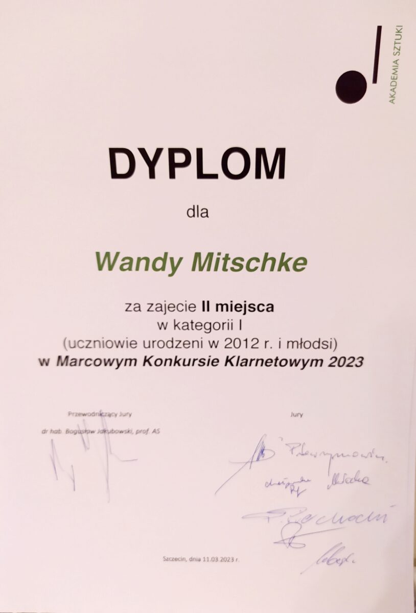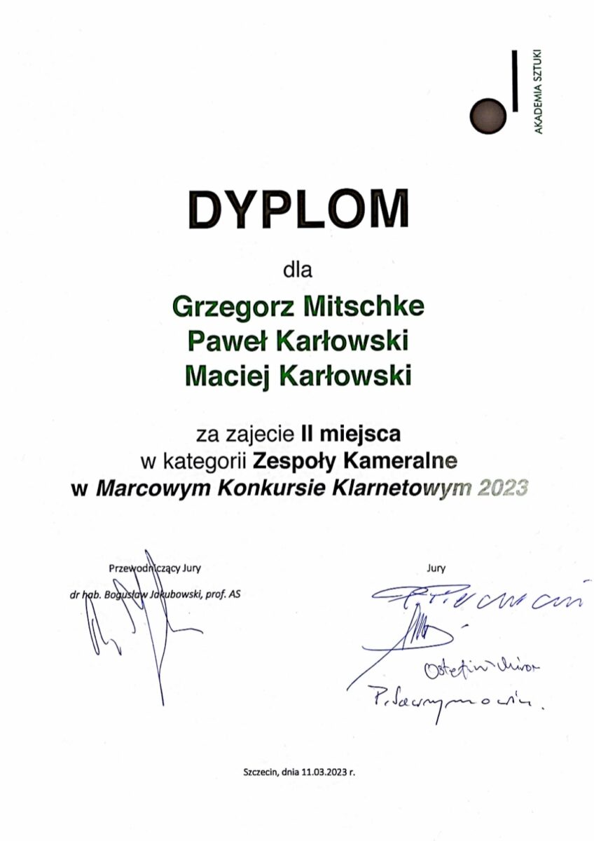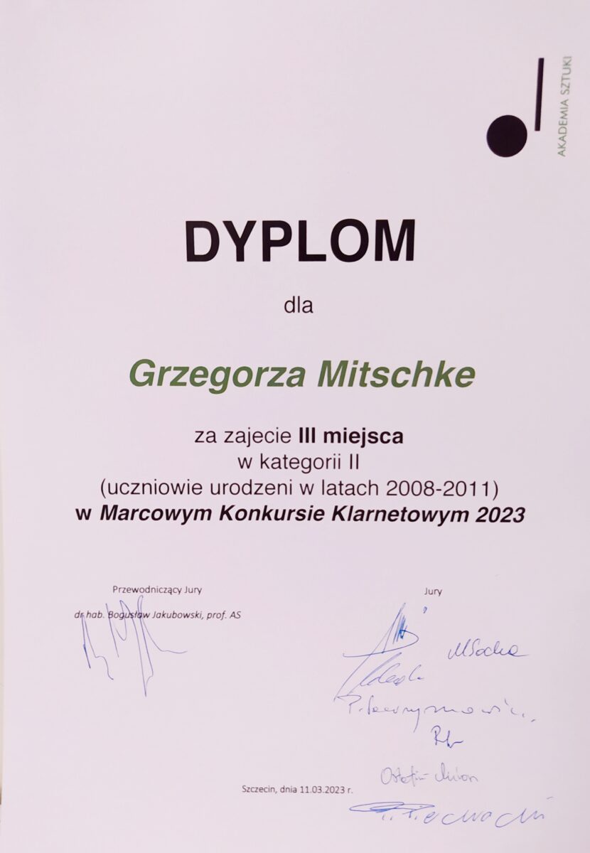 Konkurs Instrumentów Dętych Drewnianych Stroikowych, 25.04.2023 Szczecin – III miejsce