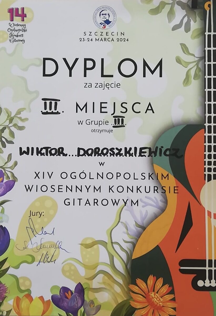 XIV Wiosenny Konkurs Gitarowy, 23-24.03.2024 Szczecin – III miejsce