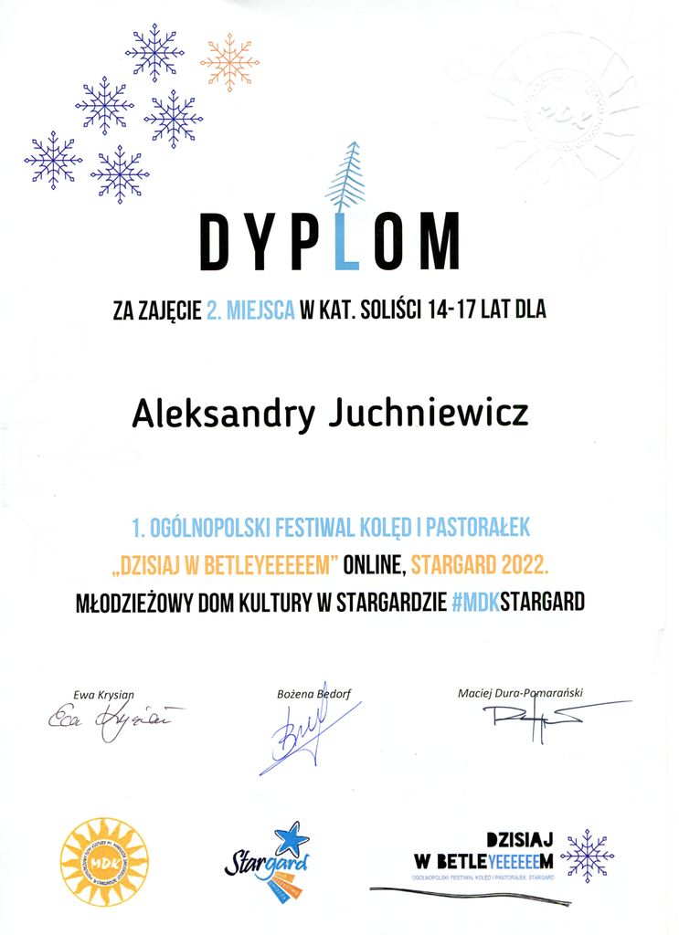 Julia Skałacka (22 pkt) – z klasy p. Włodzimierza Radin-Rutkowskiego