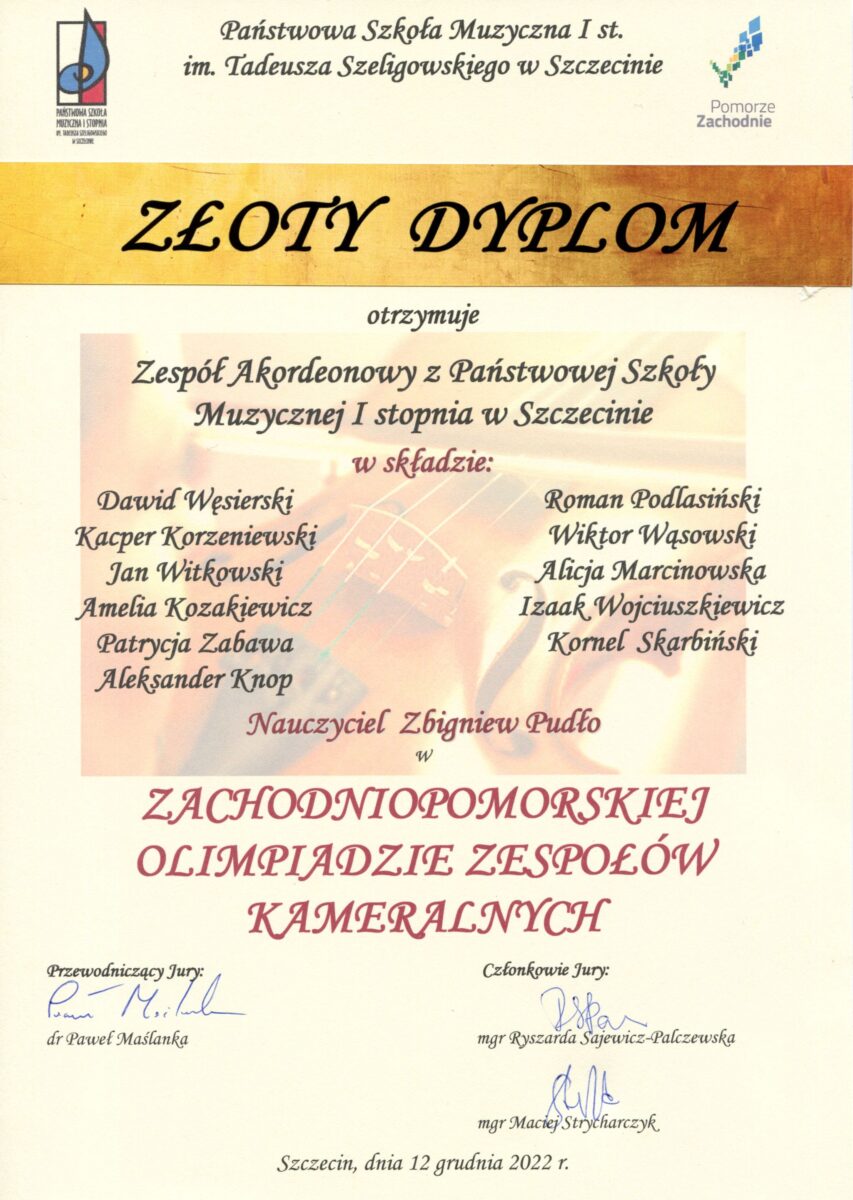 Zachodniopomorska Olimpiada Zespołów Kameralnych , 12.12.2022 Szczecin – Złoty Dyplom