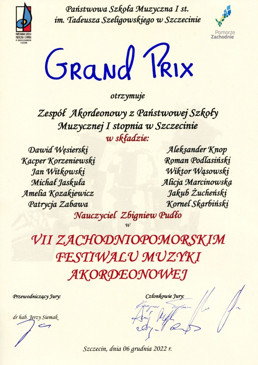 VII Zachodniopomorski Festiwal Muzyki Akordeonowej , 06.12.2022 Szczecin – Grand Prix